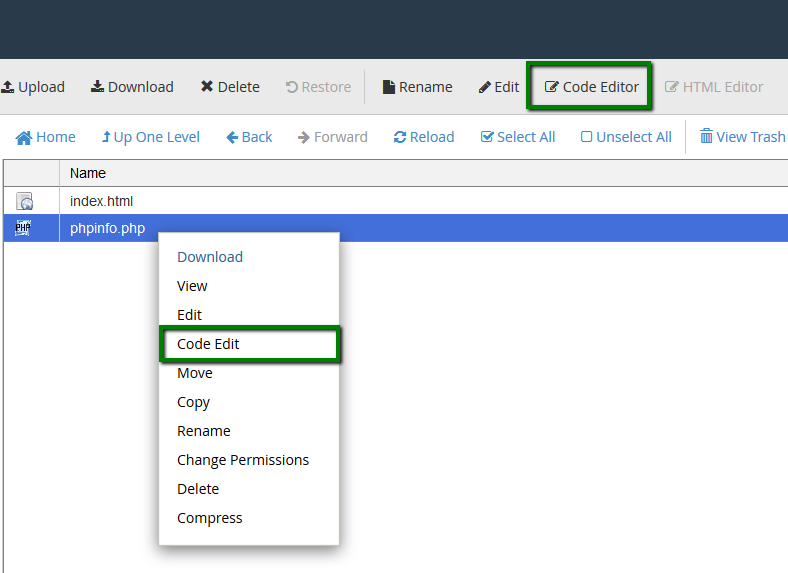 3. فایل جدید ایجاد شده در لیست را پیدا کنید و روی Code Editor کلیک کنید: