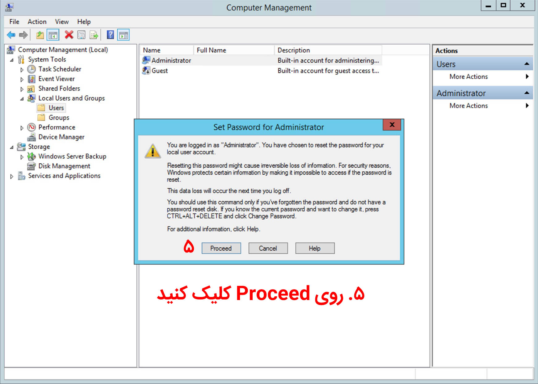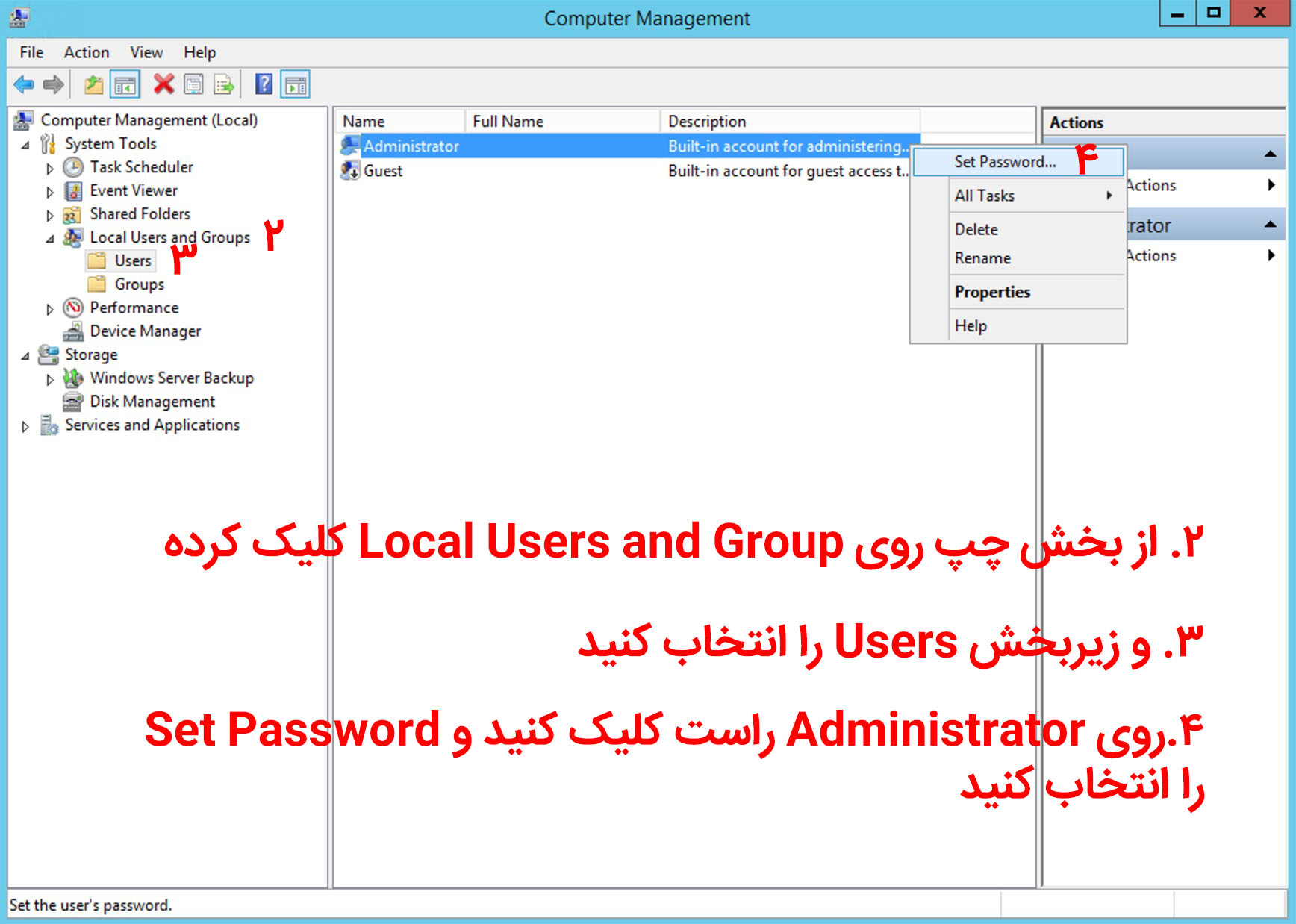 ۴.روی Administrator راست کلیک کنید و Set Password را انتخاب کنید