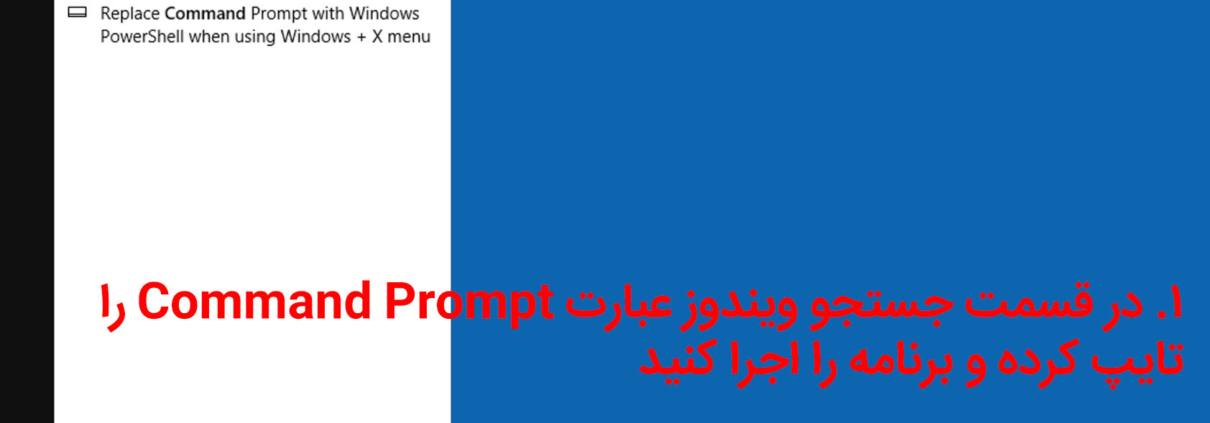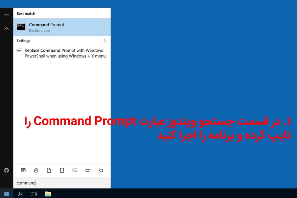 ۱. در قسمت جستجو ویندوز عبارت Command Prompt را تایپ کرده و برنامه را اجرا کنید