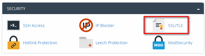 مطابق تصویر پایین در صفحه اصلی سی پنل از بخـش SECURITY بر روی مورد SSL/TLS کلیک نمایید.