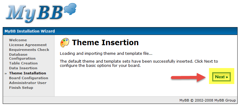 10.در این وهله تم انجمن در حال لود و بارگذاری هست پـس از ظاهر شدن Next روی دکمه “Next” کلیک نمایید .