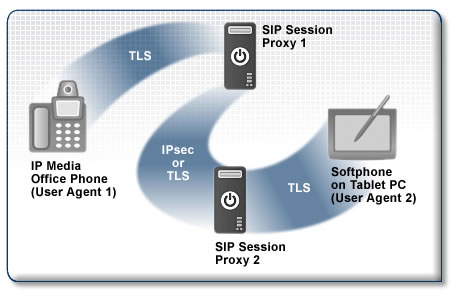 به منظور انتقال جریـان رسانه ها (صدا و تصویر)، SIP از پروتکل RTP یا SRTP کمک می گیرد . ضمناً برای انتقال ایمن پیغام های SIP ، پروتکل توسـط TLS (Transport Layer Security – امنیت لایه انتقال) رمزنگاری می شـود .