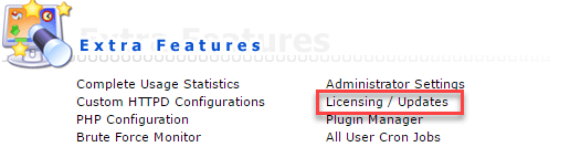 بوسیله ی نام کاربری admin وارد بخـش admin level دایرکت ادمین خود شوید ، سپس مثل تصویر پایین از بخـش Extra Features روی گزینه Licensing / Updates کلیک نمایید :